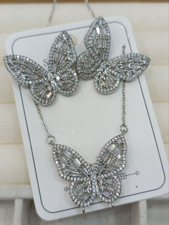 نیم ست نگین دار پروانه ،نیم ست طرح جواهر مدل پروانه کد ۵۵۷۷butterfly
