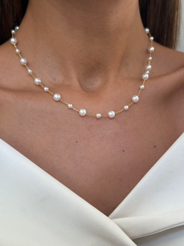 گردنبند استیل مرواریدی مشابه طلا رنگ ثابت ،گردنبند مرواریدی کد Na18900