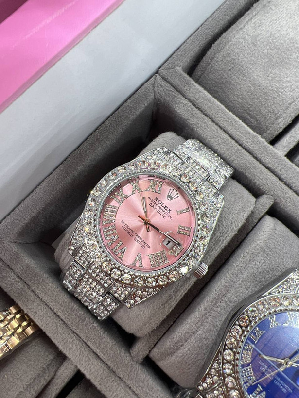 ساعت زنانه فول نگین رولکس صورتی کد ۵۵۹۰