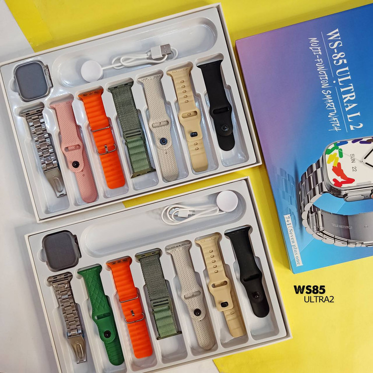 🌍ساعت الترا🌍دارای 7 عدد بند 🌍 پین بند فعال⛔️بند فلزی استیل رنگ ثابت ⛔️ظریفت باطری دوبرابر⛔️شارژروایرلس فست شارژ⛔️گرافیک نرم افزاری بالا 🌍رنگبندی مشکی
