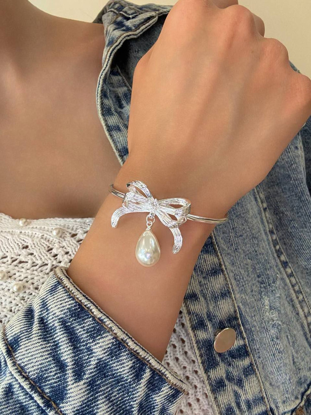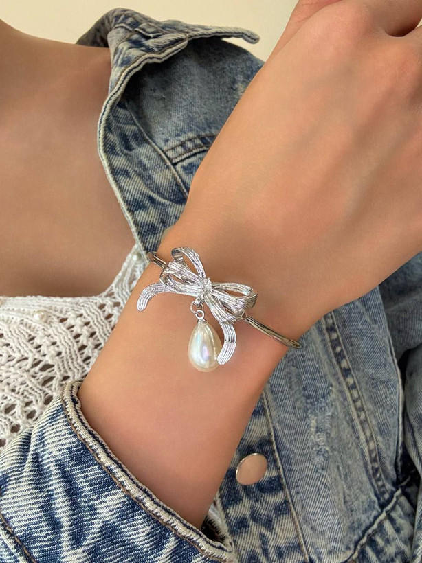 دستبند زنانه پاپیون ،دستبند رنگ ثابت پاپیون ،دستبند فری سایز ،بنگل پاپیون کد ۵۴۹۰